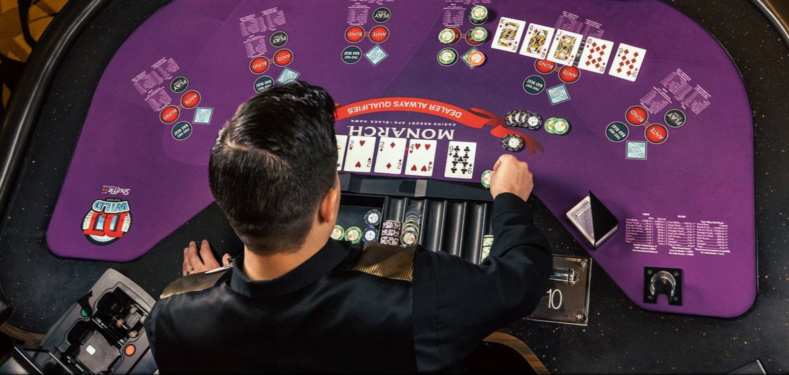 Dealer uniforms must present a consistent, professional appearance across all table games while withstanding daily wear and frequent laundering.